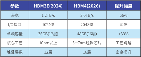 表1:HBM3E與HBM4關鍵性能對比
